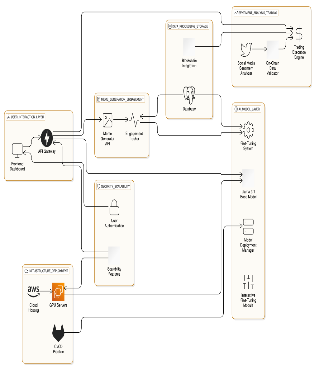 The KekBot agents are built on a highly efficient transformer model with 405 billion parameters. This transformer architecture enables KekBots to have deep language comprehension, understanding both the syntactic and semantic meaning behind user inputs. The scale of the model ensures the agents can generate contextually accurate and nuanced responses, even in complex or multi-turn conversations. The transformer model processes input in parallel across multiple layers, which allows it to generate contextually relevant outputs faster and more efficiently. This model is especially powerful in handling large volumes of data and can process various forms of natural language inputs, including informal, colloquial speech or specialized terms related to memes and crypto culture.